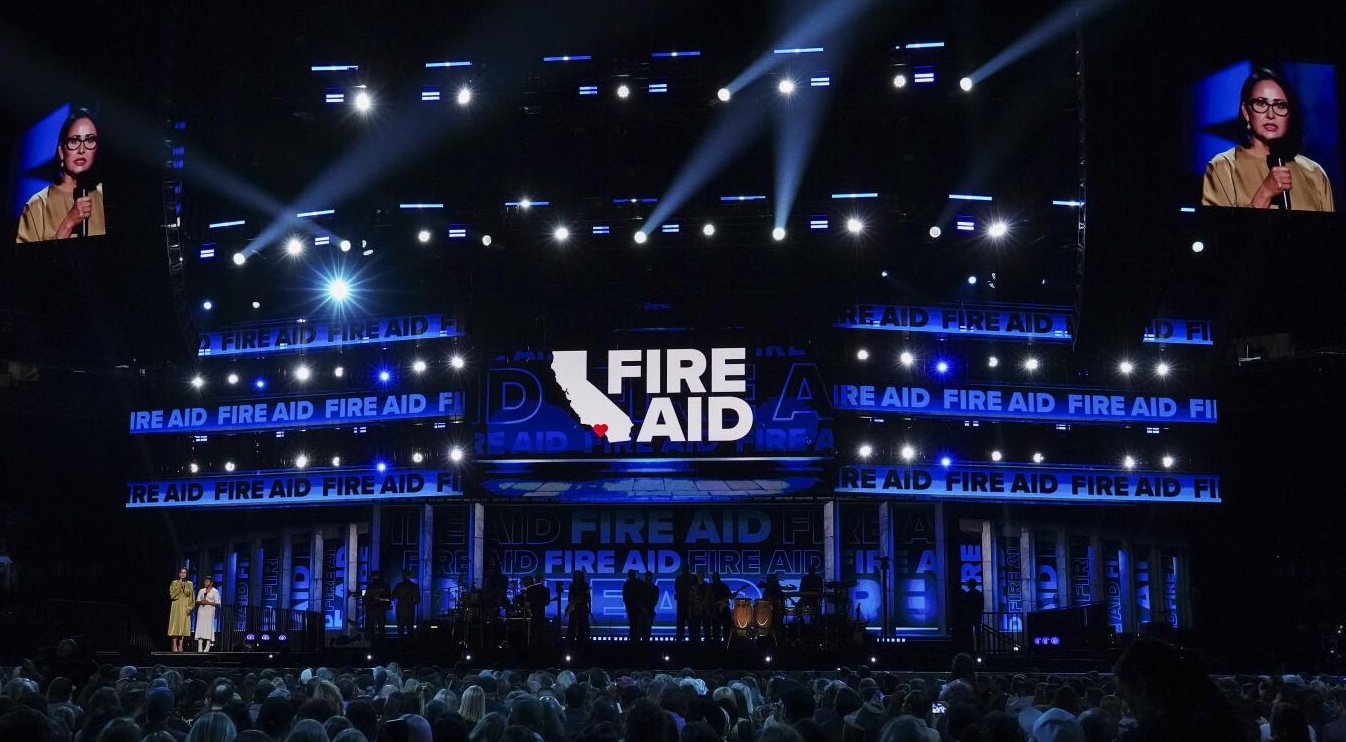 A general view of atmosphere during the FireAid benefit concert on Thursday, Jan. 30, 2025, at Intuit Dome in Inglewood, Calif. (Photo by Jordan Strauss/Invision/AP)
